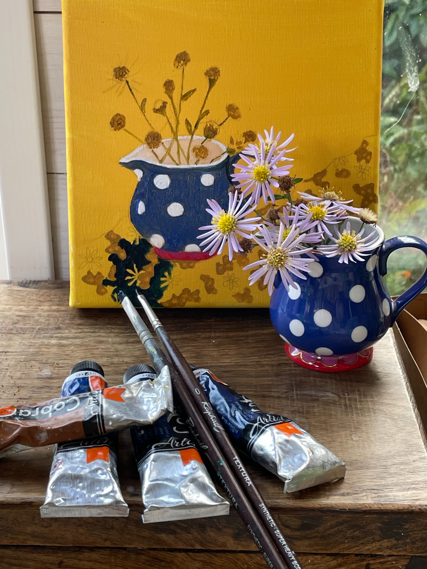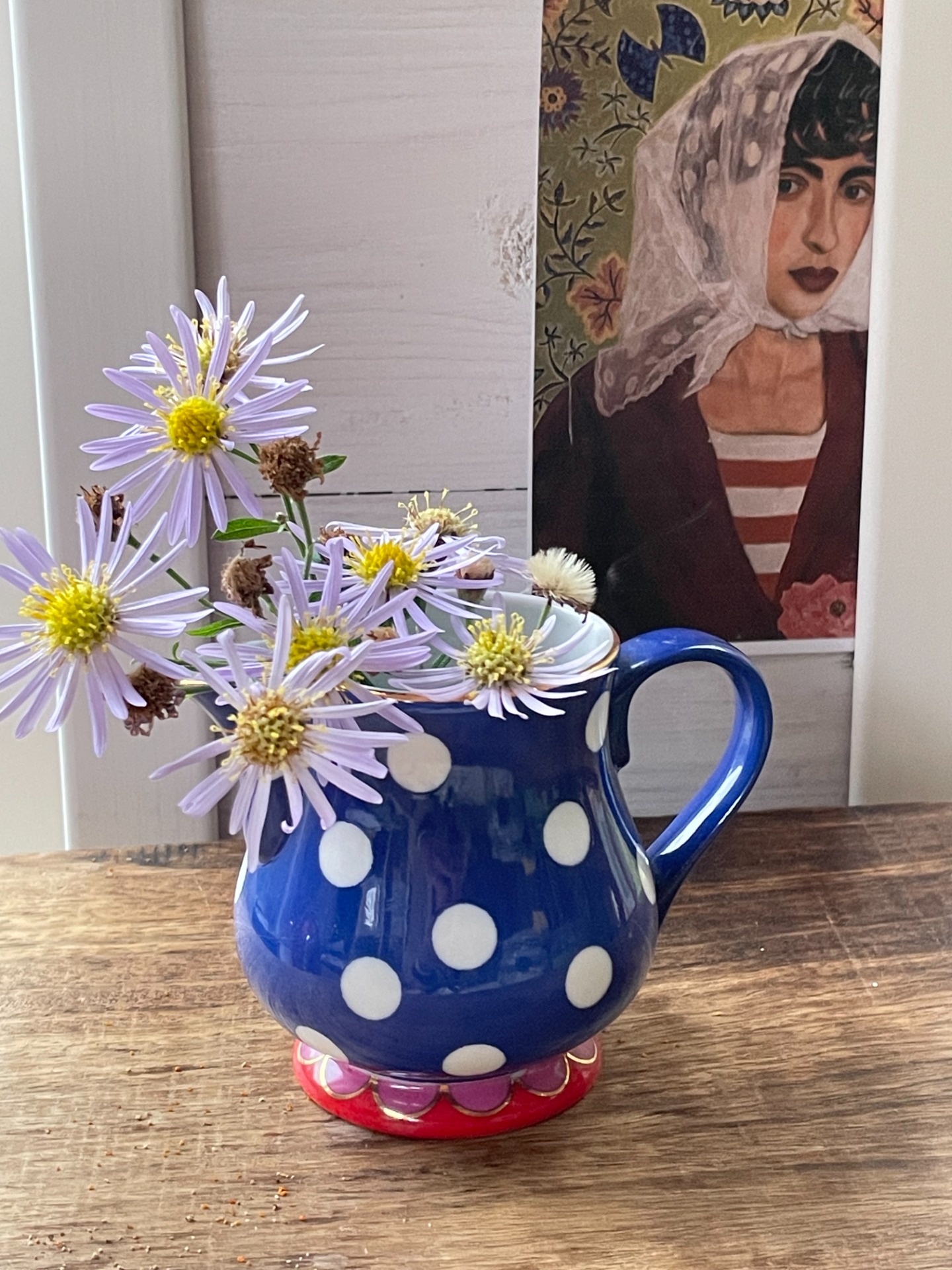 After having had my COVID vaccination I happily walked out and saw these autumnal flowers we call asters,( Michaelmas daisies in English) I picked two small sprigs and took them home.