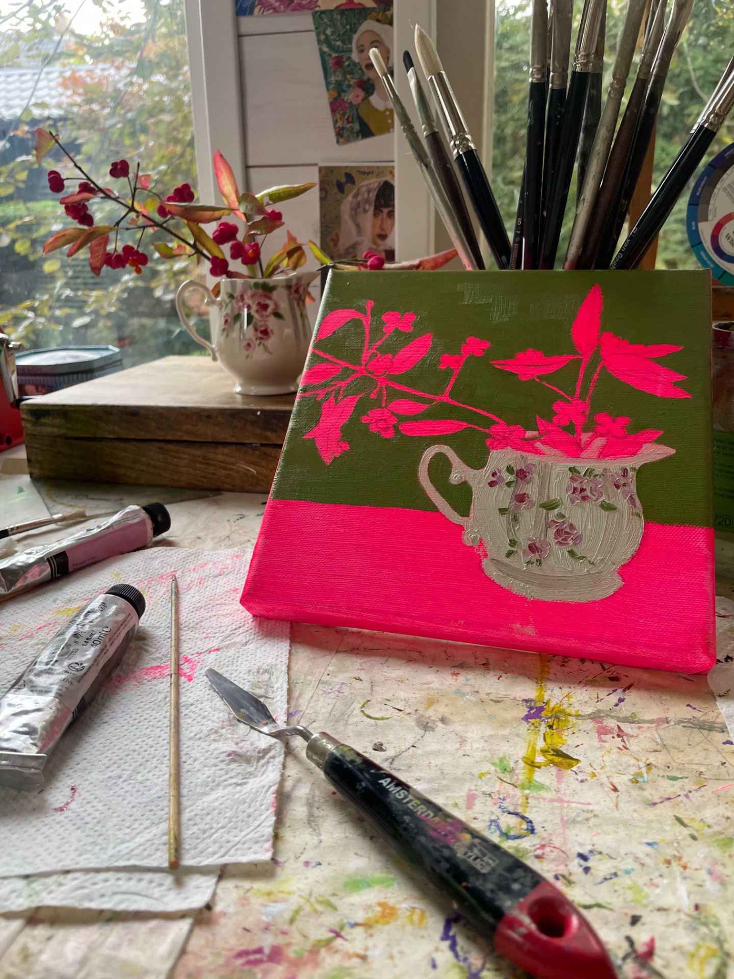 Couldn't get them out of my head so my love drove me back to that forest so that I could snip a little branch. I had to worm myself between two prickly bushes and got back into the car with the needles in my pants!
